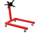 Оснащен редуктором для легкого вращения одной рукой. Редуктор позволяет поворачивать вывешенный двигатель под углом 360°. Надежная сварная конструкция и 4 поворотных колеса обеспечивают маневренность и устойчивость к перевороту. В комплекте поддон для сбора отработанного масла. С 4-мя регулируемыми кронштейнами для удобства вывешивания и обслуживания ДВС легковых и легких грузовиков. Для сборки/разборки моторов V6 и V8. г/п: 500 кг.