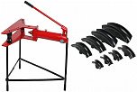 12 тонн. На подставке. Трубогиб для трубы диаметром от 1/2 до 2 дюймов (15-50 мм) с толщиной стенки трубы (2,75-3,5 мм). Ход поршня 230 мм. В комплекте 6 пуансонов: 1/2", 3/4", 1", 1-1/4", 1-1/2", 2".