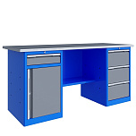 Двухтумбовый. Допустимая нагрузка на столешницу 1000 кг. Опорные элементы выполнены сварными из холоднокатаной стали. Для выполнения сборочных, ремонтных, слесарных, монтажных и других видов работ на производстве, в сервисных центрах, мастерских, гаражах, а также для обучения технологии в учебных заведениях. Комплектуется полкой-стенкой, расположенной под столешницей для удобного размещения габаритного инструмента и оснастки. Размеры верстака: 855x1796x696 мм. Вес: 123 кг. Поставляется в 4 комплектациях на выбор.