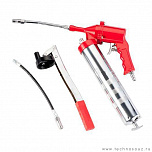 Шприц для смазки пневматический для шприцевания консистентной смазкой – 5 предметов. Объем бака – 0,5л. При давлении воздуха 2-8атм давление смазки 80-400 атм максимально. Набор: нагнетатель, емкость для смазки, мягкий и жесткий наконечник, адаптер для подключения 1/2”.