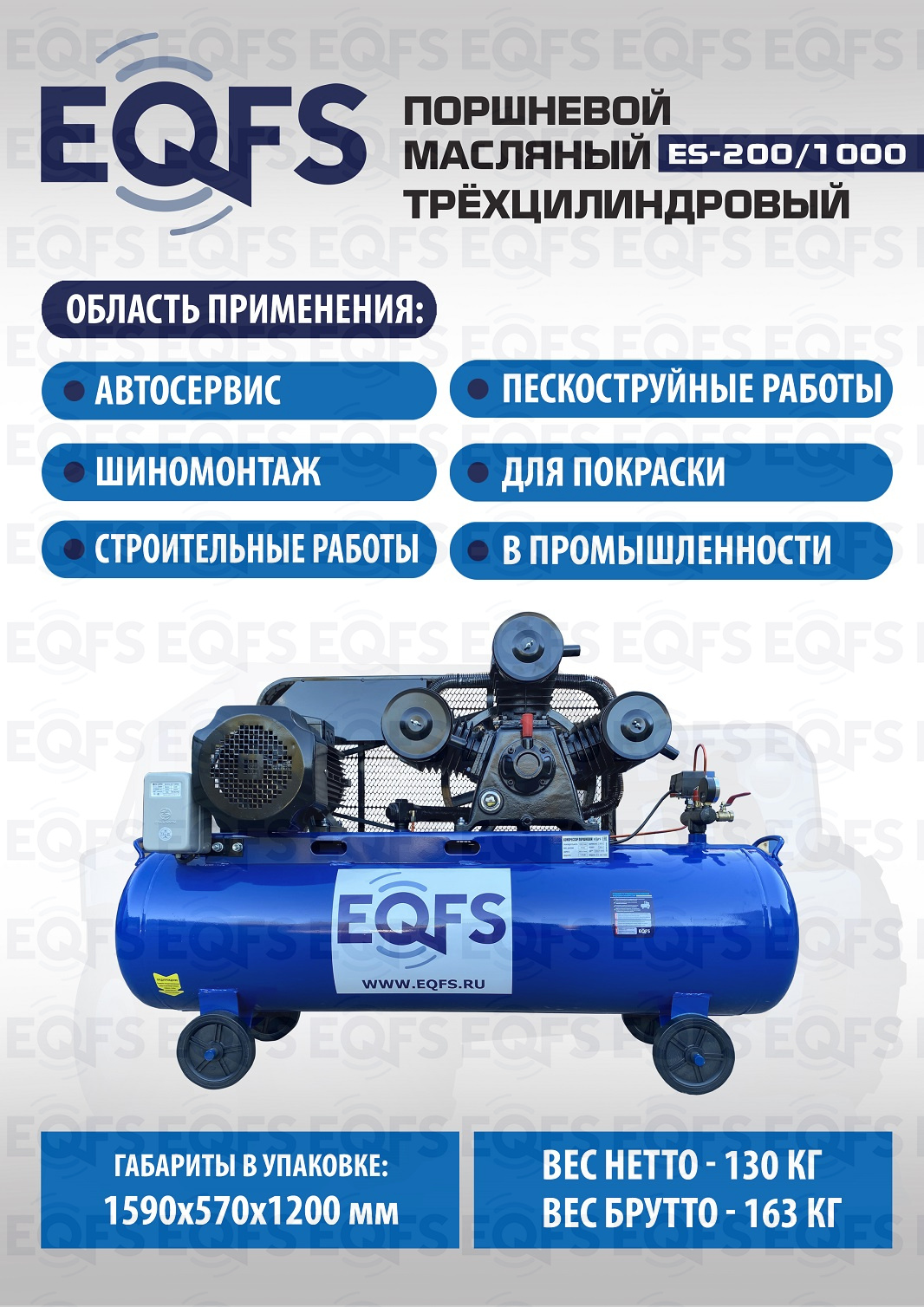 Компрессор воздушный, передвижной, поршневой, масляный, трёхцилиндровый. Быстро достигает нужного давления. Трёхпоршневая головка двигателя уменьшает износ деталей и увеличивает срок службы. Ременной привод — предохранят мотор от поломки. Идеальное решение для шиномонтажа, автосервиса, строительства, покраски, промышленности. Давление 8 Атм. Производительность 1000 л/мин. Мощность 4 кВт. Напряжение 380В. Ёмкость ресивера 200 л. Гарантия 12 месяцев.