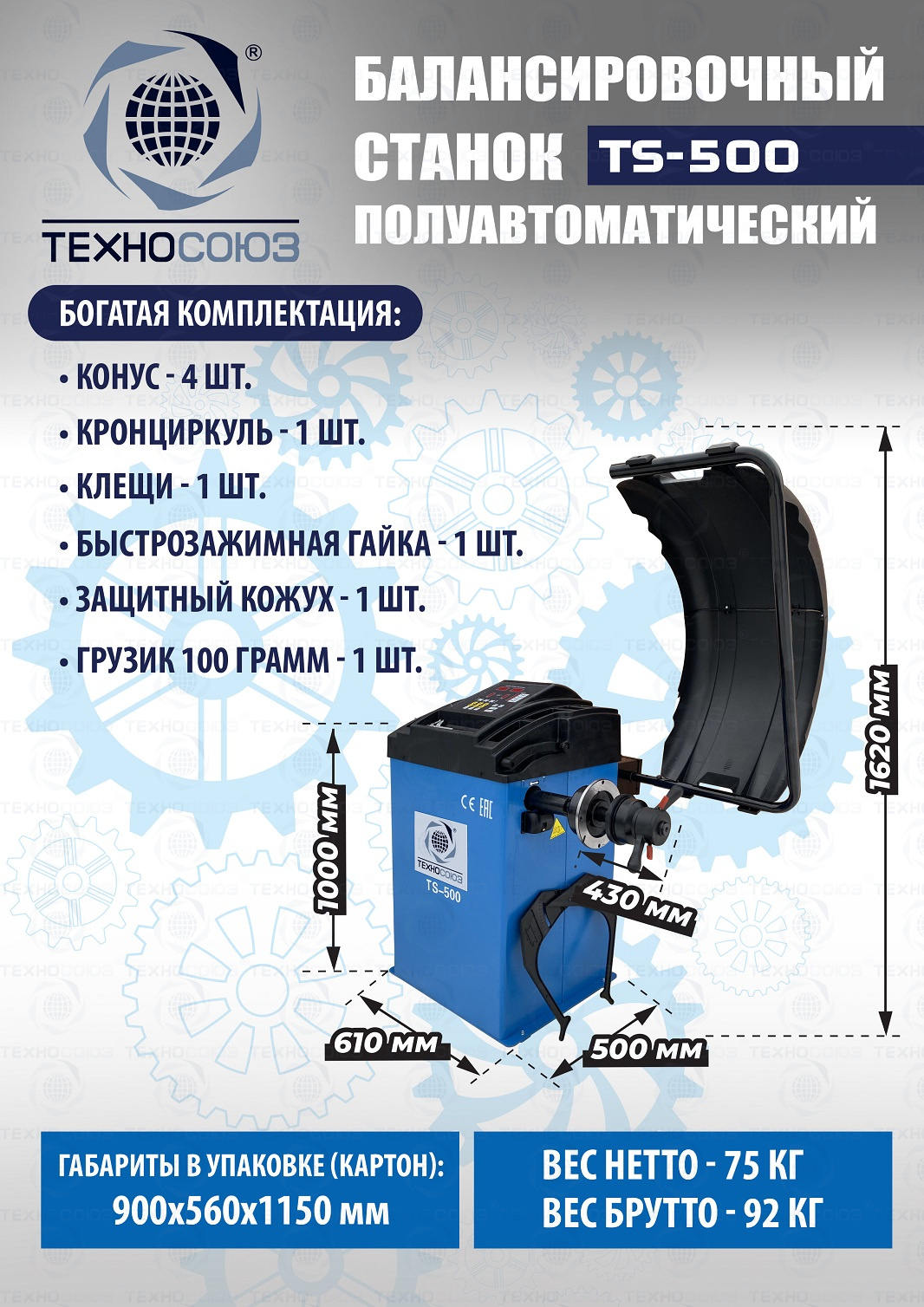 Балансировочный станок для легковых авто и «Газелей. Полуавтомат. Лазерная указка места установки грузика. Режимы работы: STANDART, STATIC, ALU1, ALU2, ALU3. Автокалибровка. Режим оптимизация дисбаланса. Режим MOTO. Автозапуск при опускании кожуха. Для легковых авто и «Газелей» с диаметром диска с резиной до 760 мм. Размеры диска: ширина 1,5–20” (40-510 мм), диаметр диска 10–24” (256-610 мм). Макс. вес колеса с диском ≤ 65кг. Вал-36 мм.Точность ±1гр, 220 В. Гарантия 12 мес.