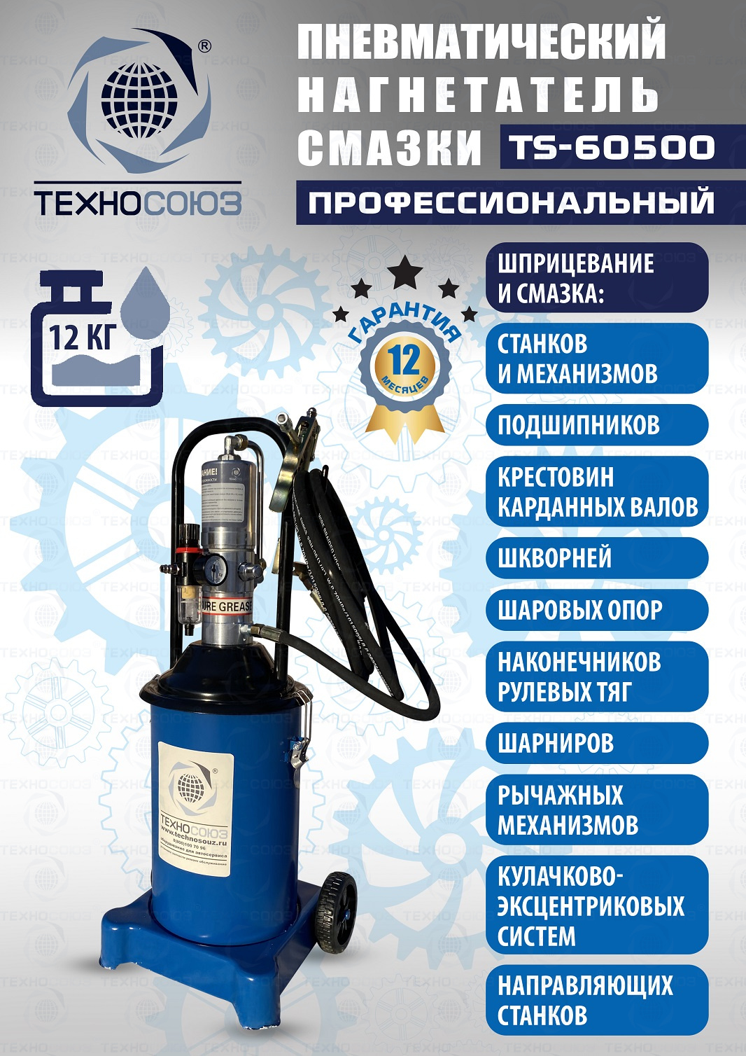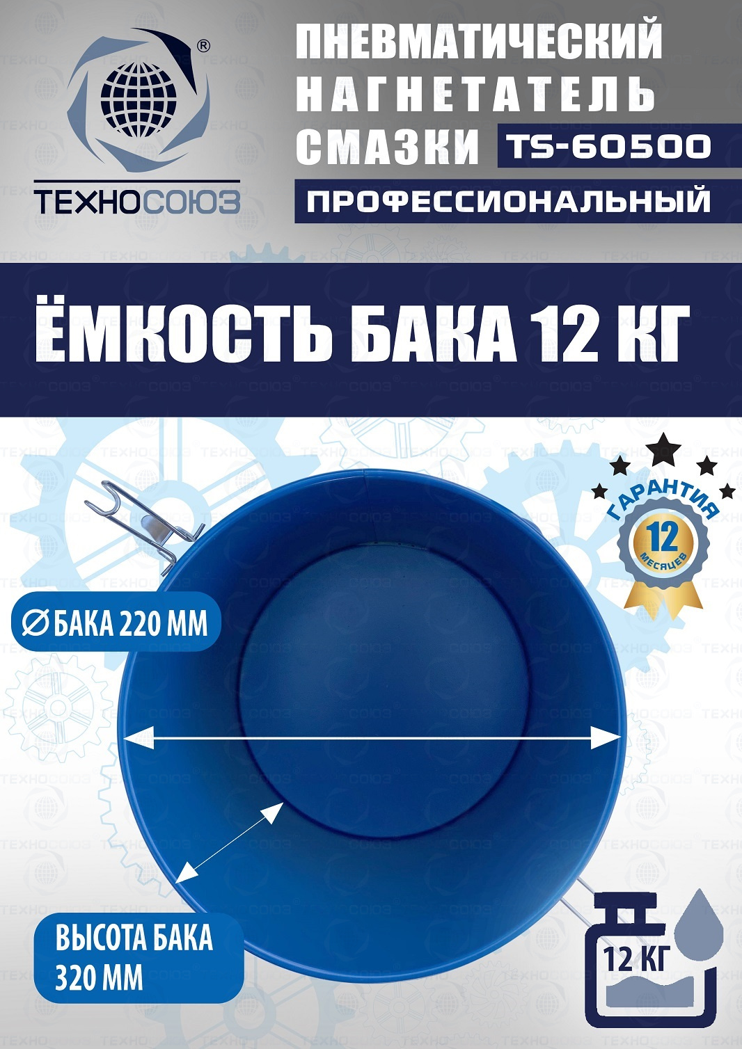 TS-60500 Нагнетатель смазки пневматический 12 л
